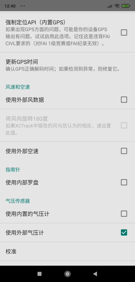 - 勾选“使用外部气压计”。
